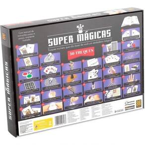Super Kit De Mágicas - 30 Truques - Grow Que tal se tornar um mágico? Truques que vão surpreender a plateia! Super Mágicas traz copinho que atravessa a mesa, cordas mágicas, moedas que aparecem e desaparecem e muitas mágicas com cartas para deixar todos de boca aberta. Divirta-se! Participantes: 1 ou mais. Código: 054474 Dimensões aprox. da embalagem em cm: 27,1x37,6x5,5 Peso liq. Aproximado do produto na embalagem: 563g Referência do Modelo: 02713 Certificado Inmetro: CE-BRI/ICEPEX-N 01264-25 - NM300-2004 OCP 0046 Conteúdo da Embalagem: Baralho, fichas, cordões, copinho, balão, lenço preto, cartelas, adesivos, bloco de papel, bloco de papel impresso, moedas cartonadas, relógio cartonado, caixinhas cartonadas, varetas, cartas e manual de instrução. Composição/material: Cartonado, Plástico Idade recomendada: a partir de 8 anos Garantia: 90 dias contra defeitos de fabricação pelo fabricante Imagens meramente ilustrativas. As cores e tonalidades podem variar. Gênero - Meninas Meninos Unissex Idade - 8 Anos 9 anos 10 Anos 11 Anos Tipo - Mágicas Ean: 7908010127133