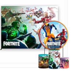 Super Kit de Painéis de Festa Fortnite Painel Redondo 1,50 e Retangular Várias Medidas - Fera Print - Cor: Fortnite 11 | Medidas do Painel: Painel Retangular 5,00x2,50 metros