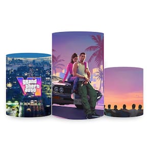 Super Kit de Painéis de Festa GTA VI- Fera Print - Medidas do Painel: Painel Redondo 1,80 metros | Medidas do Painel: Painel Retangular 4,50x3,00 metros