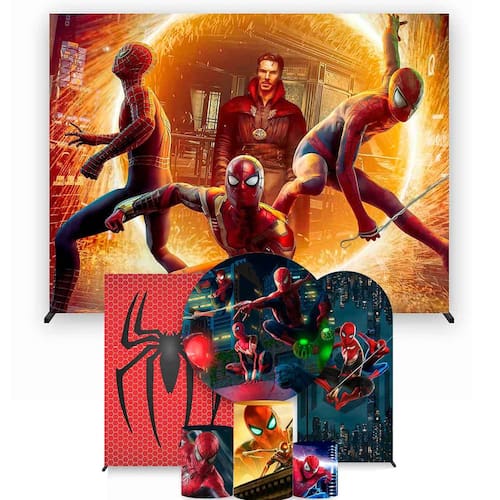 Super Kit de Painéis de Festa Homem Aranha Painel Redondo 1,30 e Retangular Várias Medidas - Fera Print - Cor: Homem Aranha 13 | Medidas do Painel: Painel Retangular 6,00x3,00 metros