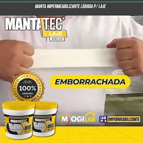 Atacadão rede mogilar - loja do impermeabilizante - somos líderes em vendas - 100 % qualificações positivas.Manta líquida mantatec laje 4kg acrílica impermeabilizanteChega de dores de cabeça com vazamentos e infiltraçõesApresentamos a solução definitiva para proteger sua laje, diga adeus aos danos causados pela umidade e garanta uma construção segura e duradouraA mantatec laje apresenta sua nova fórmula aprimorada, oferecendo além da impermeabilização, um conforto térmico excepcional para o seu projeto. Com a manta líquida mantatec laje, você obtém a solução perfeita para proteger sua estrutura contra infiltrações, garantindo máxima resistência e durabilidade.A aplicação é simples e descomplicada, permitindo que você relaxe e tenha a tranquilidade de um serviço bem executado. Nossa manta líquida protege sua laje, calha ou telha de fibrocimento contra chuva, sol e infiltrações, proporcionando uma proteção eficiente desde o início da obra.Com excelente aderência, nossa manta líquida mantatec laje garante uma camada impermeável, flexível, e emborrachada, evitando fissuras e mantendo sua superfície protegida ao longo do tempo.- pronta para uso- flexibilidade- elasticidade- durabilidade- aplicação:Aplicar no mínimo 3 demãos com intervalo de 4hrs. O local deve ser limpo, isento de corpos estranhos, restos de fôrmas, pontas de ferragem, restos de produtos desmoldantes ou impregnantes, falhas e ninhos.Indicação: verifique a previsão do tempo, se terá no mínimo 2 a 3 dias sem chuva no dia da aplicação.- rendimento: 3m á 5m- diluição: selar a 1 demão com 50% de água, não diluir a 2 e 3 demão.- secagem:Ao toque: 2 horasEntre demãos: 4 horasFinal: 48 horasGaranta o melhor para sua obra, escolhendo mantatec laje para obter conforto térmico superior e proteção necessária contra infiltrações. Com sua solução eficaz é ideal para garantir o sucesso do seu projeto, oferecendo uma impermeabilização de alta qualidade e durabilidade.Proteja sua estrutura e proporcione ambientes agradáveis e protegidos com a manta líquida mantatec laje. Conte com a confiança e qualidade que só a a marca pode oferecer. Invista no seu projeto e obtenha resultados desejados.--------------------------------------------------------------------------------------------------------------------------------------Obrigado por comprar com a rede mogilar mogicor & loja do impermeabilizanteSe ficou com alguma dúvida, é só entrar em contato.Estamos prontos para lhe atender = Boas compras e até breve