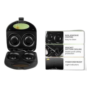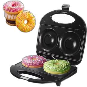 Máquina de fazer 2 donuts extra grande de 10cm (100mm) profissional. Possui material antiaderente, luz indicadora, é compacta e aquece de maneira uniforme e rápida. Superfície não aderente de dupla face sem PFOA garante cozimento uniforme. Design especial de suspensão permite que os donuts se expandam melhor.Luz indicadora de funcionamento