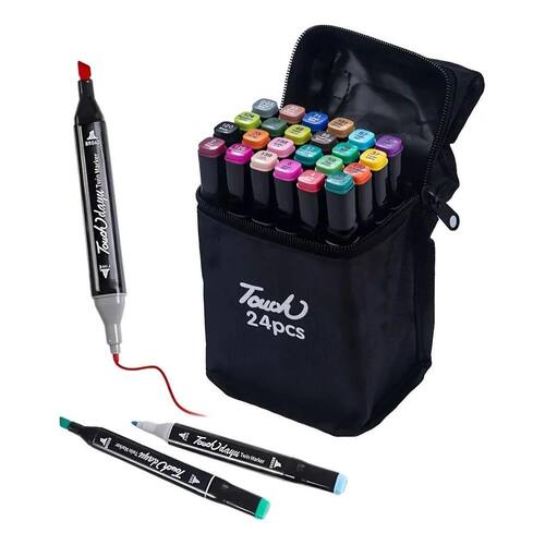 Super Conjunto Marcador de Canetas Permanente Ponta Dupla - 24 Cores