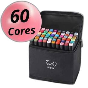 Super Marcador 60 Canetinha Coloridas Permanente Ponta Dupla