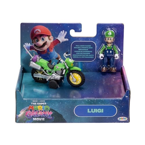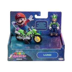 Colecione seus personagens favoritos com a figura de 6,35 cm (2,5") do filme Super Mario Galaxy, com veículo de fricção. Inspirada no filme, a figura do Luigi possui articulação exclusiva que permite que ele se sente em sua motocicleta. Puxe para trás e veja-o partir! A primeira onda inclui Mario e Luigi. Você pode colecionar todos!