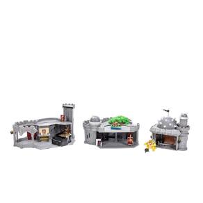 O Playset Deluxe do Bowser do filme Super Mario Galaxy é perfeito para um pequeno rei! O castelo tem três andares, com exterior e interior, e pode ser separado para brincar de diferentes ângulos. Os recursos do castelo incluem uma torre giratória, porta articulada e lareira. É o cenário perfeito para o Bowser se manter ocupado enquanto toca o piano de dois botões com sinos, pinta com as diversas telas ativadas pelo calor e o caldeirão, ou cuida do seu bonsai.