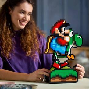 Super Mario Mario e Yoshi Lego 71438 Crie nostalgia pelos visuais encantadores de uma geração anterior de jogos Super Mario com este divertido modelo de exposição Super Mario World: Mario & Yoshi. Um divertido presente LEGO Super Mario Nintendo para adultos, este conjunto colecionável apresenta figuras pixeladas de Mario e Yoshi Nintendo e é uma decoração divertida para qualquer casa ou escritório de fã. Gire a manivela para fazer Yoshi correr com Mario nas costas e gire o seletor para fazer a língua de Yoshi aparecer e sair. O conjunto de jogos Super Mario inclui uma Action Tag para que você também possa adicionar uma figura LEGO Mario, LEGO Luigi ou LEGO Peach dos conjuntos 71439, 71440 ou 71441 - vendidos separadamente para uma experiência interativa. Encontre instruções de construção no aplicativo LEGO Builder para orientar cada etapa da sua experiência criativa e envolvente com este colecionável Mario. Contém 1.215 peças. Homologação Inmetro: ABCP-BRI-0275-2022-10 Marca: Não Informado