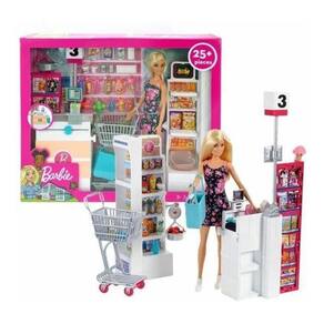 A boneca Barbie adora ajudar nas compras e tem todos os itens para deixar as compras bem mais divertidas, ajude a Barbie a pegar o carrinho de compras ele realmente rola com essa linda mercearia as crianças terá tantas comidas para comprar e diversa refeições para cozinhar