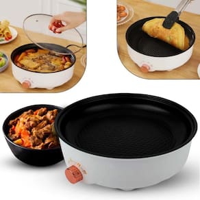 Panela elétrica multifuncional com 3 níveis de temperatura e revestimento antiaderente. Possui tampa de vidro com saída de vapor, pegada anti-queimaduras e proteção contra queima a seco.Lâmpada piloto