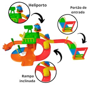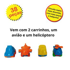 A nova Super Pista Baby está com o circuito maior, mais divertido, com mais peçãs e heliporto. Além de divertir a criança, auxilia na habilidade manual, estimula a imaginação, percepção de cores e formas, a criatividade e o desenvolvimento sensorial. A brincadeira começa desde a montagem da pista, com peças de encaixar coloridas formam a super pista com rampa, ponte, cruzamento, curvas, entrada, cancela, garagem, semáforo, heliporto, plaquinha de trânsito, dois carrinhos baby, um avião, um helicóptero e muita brincadeira! A pista pode ser montada/desmontada várias vezes. Compativel com carrinhos da Hot Wheels. O brinquedo é fabricado em material atóxico (Polipropileno) e de grande resistência a quedas, batidas ou impactos. Contém selo de segurança da INMETRO. Ean: 7898096085703