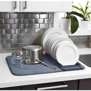 Tapete Absorvente de Microfibra: Com 60 cm de comprimento e 43 cm de largura, o tapete absorve rapidamente a umidade, proporcionando uma superfície seca e macia para suas louças, copos e utensílios.