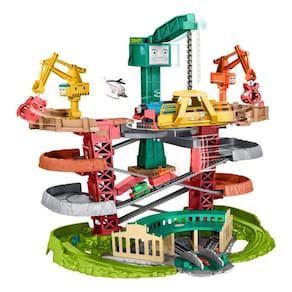 O "Thomas e Seus Amigos Super Torre" da Fisher-Price traz a emoção da série para as crianças com mais de 80 cm de altura. Este conjunto de trilhos em vários níveis apresenta personagens favoritos, uma plataforma giratória e três guindastes para carregar e descarregar. As crianças podem controlar a ação com alavancas e interruptores, decidindo para onde os trens vão.