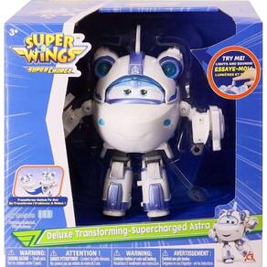 Astra pode se transformar de avião de brinquedo em bot -- e agora ela está super carregada no programa de TV pré-escolar de sucesso Este Astra supercarregado luxuoso de 15,24 cm apresenta luzes e sons do show de sucesso da pré-escola Super Wings. Seu know-how científico e talentos de alta tecnologia recebem um impulso cósmico com luzes e sons em modo super carregado. Feito para fãs da pré-escola Super Wings com idades acima de 3 anos. Requer 3 baterias de botão LR44, incluídas. Astra é sua estrela de longe Ela é a única membro da equipe que vive no espaço sideral e pode tirar uma imagem geral do que está acontecendo na Terra de sua perspectiva única.