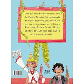 Um super-herói divertido para cada letra do alfabeto.As ilustrações em aquarela e nanquim trazem o super uniformizado com sua letra na roupa.Tem a Besouro Rosa, o Mega Mosca, a Feiticeira Florida, o Guitarra Boy...Um deles pode estar ao seu lado e você nem sabe...
