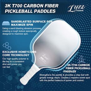 ?Liberte seu espírito competitivo e domine a quadra com esta raquete de pickleball de alto desempenho? 1. Feita de fibra de carbono premium T700, esta raquete de pickleball oferece força e durabilidade excepcionais, garantindo que possa suportar os rigores de jogos intensos. 2. A estrutura de fibra de carbono T700 oferece um equilíbrio ideal de potência e controle, permitindo que você libere tiros poderosos enquanto mantém a precisão. 3. Com seu design leve, esta raquete reduz a fadiga do braço, permitindo que você jogue por mais tempo e aproveite cada rali ao máximo. 4. A superfície texturizada melhora a aderência e a rotação, dando a você uma vantagem sobre seus oponentes. 5. Seja você um experiente ou um jogador recreativo, a raquete de pickleball luzz é a companhia perfeita para levar suas habilidades a novos patamares. - A tecnologia de superfície incomparável das pás de pickleball de fibra de carbono T700 aumenta a força das raquetes de pickleball, permitindo que você gire como um com nossa superfície jateada atualizada. - Experimente o próximo nível de jogo com nosso exclusivo núcleo de favo de néctar das flores de polipropileno em remos de pickleball. Reduz a vibração e oferece velocidade estável, dando a você maior controle. Diga olá com precisão! - A ampla área de remo de pickleball cria pontos ideais maiores para a tacada perfeita, proporcionando velocidade consistente enquanto absorve o impacto e suaviza a sensação. A raquete pesa entre 232 e 235 g. - Dê adeus à fadiga do pulso com nossa aderência ergonômica ultraconfortável (12 cm), projetada para absorver a transpiração e os impactos enquanto eles viajam do rosto da raquete para a mão, garantindo que você fique confortável e mantenha uma aderência segura durante suas partidas com o conjunto de pickleball. - Confie na qualidade que atende aos altos padrões da USAPA. O design exclusivo 3D e os padrões radicais dão à raquete de pickle uma aparência distinta, fazendo uma declaração tão inesquecível quanto o seu jogo.