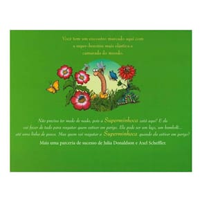 Você tem um encontro marcado aqui com a super-heroína mais elástica e camarada do mundo. Não precisa ter medo de nada, pois a Superminhoca está aqui! E ela vai fazer de tudo para resgatar quem estiver em perigo. Ela pode ser um laço, um bambolê... até uma linha de pesca. Mas quem vai resgatar a Superminhoca quando ela estiver em perigo? Mais uma parceria de sucesso de Julia Donaldson e Axel Scheffler.