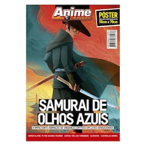 Edição especial posterzine da Anime Invaders com tudo sobre o Samurai de Olhos Azuis. De um lado 12 páginas de reportagem sobre o universo dos animes, Catálogo Otaku e reviews das principais séries, animações e filmes do universo anime. Do outro lado, postêr com arte oficial do Samurai de Olhos Azuis, em formato gigante, 50x70cm aberto, impresso em alta gramatura, para decorar seus ambientes, ou você colecionar!