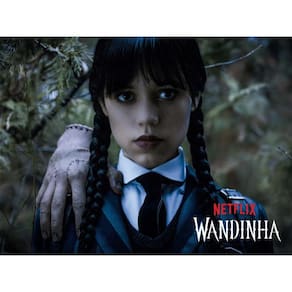 Wandinha - Wandinha e Mãozinha - PosterzineA Família Addams voltou com tudo em uma nova série para a Netflix e tornou-se um sucesso avassalador. Saiba quem são os principais personagens envolvidos em uma trama de mistério que pode destruir o colégio Nunca Mais, a última instituição educacional que pode suportar a terrível Wandinha. A arte oficial, em tamanho gigante 70 x 50 cm, exibe Wandinha com seu maior amigo/aliado/ajudante/vítima, Mãozinha.