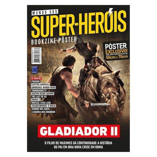 A nova edição de Mundo dos Super-Heróis destaca Gladiador II, que traz de volta o épico de Roma, agora com o filho de Maximus assumindo o legado de seu pai. A trama mergulha em uma nova crise no império, cheia de batalhas intensas e intrigas políticas, mantendo o espírito do clássico autêntico. Além disso, a revista traz informações sobre grandes lançamentos, como Capitão América: Admirável Mundo Novo, Thunderbolts, The Last of Us, Moana 2 e Mufasa: O Rei Leão. Acompanha também um pôster exclusivo de 50cm x 70cm, perfeito para os fãs de ação e história. Uma leitura obrigatória para os apaixonados por grandes épicos cinematográficos!