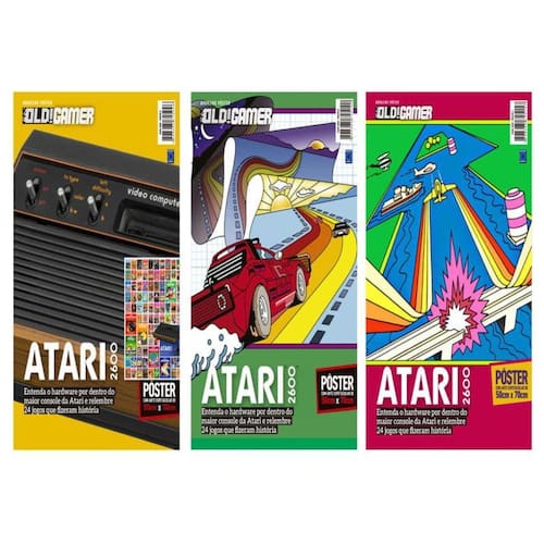 Pôsteres Atari 2600Uma edição única para os fãs do console que realmente ?inventou? o mudo dos videogames como ele é, o Atari 2600. Entenda o hardware por dentro do maior console da Atari e relembre 24 jogos que fizeram história.Bookzine Pôster: fechado você tem o conteúdo de um livro, aberto uma imagem única para decorar ambientes.- Pôster A: Versão do pôster com Posterpedia das caixas de todos os jogos de sucesso do console. - Pôster B: Versão do pôster com a caixa do jogo clássico Enduro em tamanho gigante. - Pôster C: Versão do pôster com a caixa do jogo clássico RiverRaid em tamanho gigante.