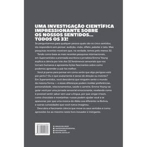 Uma investigação científica e reveladora sobre os nossos sentidos — todos os 32. Você já parou para pensar em como sente que algo perigoso está por perto? Ou o que é senso de direção ou instinto? Se perguntarmos a qualquer pessoa quais são os nossos sentidos ela responderá sem pensar: audição, visão, olfato, paladar e tato. Mas pesquisas recentes mostram que, na verdade, temos pelo menos 32.A premiada escritora e jornalista científica Emma Young passou mais de uma década pesquisando sobre os sentidos do ser humano e agora revela a ciência por trás dessas habilidades.Em Supersentidos, a autora nos guia por uma jornada sensorial singular, revelando, por exemplo, como saboreamos as coisas sem usar nossa língua, por que xingar faz bem e por que chocolate e montanhas-russas podem ajudá-lo a se apaixonar.Sem a compreensão dos nossos sentidos, não compreenderemos a forma fundamental como reagimos ao mundo exterior e interior. Supersentidos vai levar você por uma jornada pelos nossos sentidos e as coisas surpreendentes que eles podem fazer por nós.Você também descobrirá que ninguém sente o mundo da mesma forma — e essas diferenças podem influenciar preferências, personalidade, relacionamentos, saúde e até mesmo a carreira que escolhemos. E até mesmo por que o toque pode aliviar a dor e por que a música “Dancing Queen” do Abba soa diferente na Bolíviapartilhando histórias surpreendentes de como uma bailarina cega conseguiu se adaptar e criar um novo método de ensido de dança e até mesmo uma enfermeira que consegue sentir o cheiro da doença de Parkinson antes de ser diagnosticada, Supersentidos revela a ciência por trás dessas habilidades que nos tornam humanos. E oferece lições fascinantes sobre como podemos aprender a usá-las a nosso favor.Descubra a fascinante ciência que move os seus sentidos e como aproveitá-los ao máximo nesse livro inovador e instigante.“Fascinante... desvenda os segredos maravilhosos de nosso cérebro e de nosso corpo.” - Daily Mail