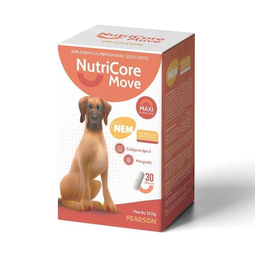 Suplemento Alimentar NutriCore Move Maxi para Cães 30 Cápsulas Suplemento Alimentar NutriCore Move Maxi para Cães 30 Cápsulas - Indicado para cães de 10 a 30 kg;- Contém em sua formulação exclusiva o NEM membrana da casca do ovo ;- Promove elasticidade e lubrificação nas articulações;- Facilita a locomoção dos pets com problemas relacionados a senioridade e doenças crônicas;- Disponível em embalagem com 30 cápsulas. Especificações IdadeFilhote, Sênior e Adulto PetCachorros Porte de RaçaGrande e Médio TipoSuplemento para cães e gatos ApresentaçãoDisponível em embalagem com 30 cápsulas. Posologia1 capsula ao dia para animais de 10 a 30kg.