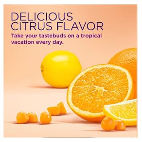 Deliciosas gomas cítricas tropicais são testadas em laboratório e contêm leite sem lactose, sem soja, sem glúten, sem trigo, sem fermento, sem peixe.