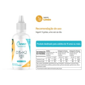 Composição: Vitamina D3 (2000UI por gota) e Vitamina K2 (30mcg por gota)