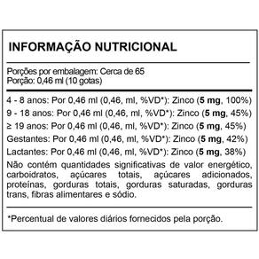 Ingredientes Água, bisglicinato de zinco, agente de massa glicerol, reguladores de acidez ácido cítrico e citrato de potássio, emulsificante lecitina, aromatizante, estabilizante goma acácia e edulcorante taumatina.