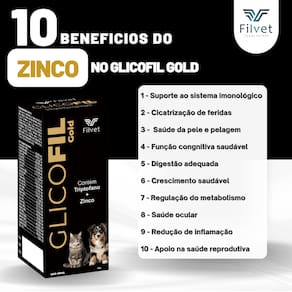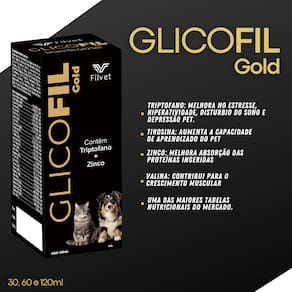 O GLICOFIL GOLD é um Suplemento Mineral, Vitamínico e de Aminoácidos, indicado para animais de pequeno e médio portes, em todos os casos em que seja necessária a suplementação dos Minerais (que são quelatados), Aminoácidos e das Vitaminas presentes em sua composição. É eficaz e auxilia na lactação das fêmeas, no complemento alimentar dos filhotes em crescimento, no reforço alimentar de animais de esportes e na complementação vitamínica e de aminoácidos dos animais mais idosos (geriatria). Auxilia aos animais no preparo para exposições e competições, estimulando o apetite, mantendo os animais com boa disposição.
