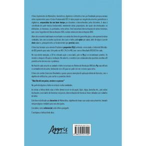 O livro Suplementos de Matemática: Geométricos, Algébricos e Aritméticos tem por finalidade precípua ensinar estes suplementos para o Ensino Fundamental (EF). A obra propõe um resgate de assuntos geométricos e algébricos, esquecidos há um bom tempo por docentes e desconhecidos pelos discentes. A obra é constituída de parte teórica fundamental, envolvendo várias proposições, das quais são destacadas: as definições, os teoremas, os postulados, entre outros. Você encontrará demonstrações de vários teoremas, bem como Sugestões de Demonstrações (SD), e ainda roteiros de demonstrações (RD).
