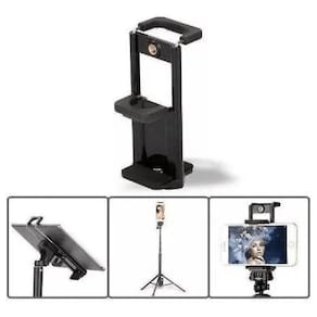 Suporte 2 Em 1 Smartphone E Tablet Para Tripé E Bastões Selfie Este Suporte 2 em 1 para Celulares/SmartPhone e Tablet Universal para Tripé, Monopé e Bastão Extensor Selfie fornece durabilidade e confiabilidade que sua fotografia e cinematográfica merecem. Suporte ajustável pode ser inclinado para visualizações horizontais e verticais com 2x Roscas de 1/4 e compatível com Telefones / SmartPhone com medidas 5.5cm até 8.5cm e Tables com medidas 11cm até 18.5cm, sendo compatível com praticamente todo os tablets, telefones celulares, Ipad do mercado.O Suporte 2 em 1 para Celulares/SmartPhone e Tablet possui Base e lateral com Rosca Universal de 1/4, perfeito para grava vídeo, tira fotos ou usa seu telefone e Tablet simultaneamente como uma webcam. Feito com material de alta qualidade feito de liga de alumínio de alta qualidade e plástico ABS, não se desvanece, não enferruja, extremamente durável. A tela do seu SmartPhone ou Tablet não é tocada pelo conector do tripé, então você não precisa se preocupar em Arranhar ou deixar marcas na tela.Características: Fácil ajuste, rotação de 360º; Base e lateral com Rosca Universal de 1/4 Excelente para conversas em Face-Time; Faça gravações de filmes sem tremidos; Transforme seu aparelho em uma Webcam; Hastes SmartPhone reguláveis de 5.5cm até 8.5cm e para Tablets de 11cm até 18.5cm Adapta-se a qualquer Tripé padrão e bastão de selfie, extremamente fácil de usar e fácil de configurar.Obs: Apenas Suporte para Smartphone e Tablet, Tripés e outros equipamentos não inclusos, apenas para ilustrar o uso do equipamento.