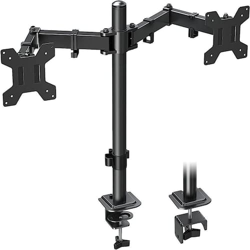 Suporte Duplo Articulado para Monitores de 10 a 32 Polegadas Ideal para Mesa ou BancadaTransforme sua área de trabalho com o Suporte Duplo para Monitores, projetado para garantir ergonomia superior e postura correta, seja para o trabalho, estudos, lazer ou games. Principais BenefíciosErgonomia e Conforto: Ajuste a posição das telas conforme necessário, proporcionando visualização confortável e reduzindo o esforço fí Versátil e Articulado: Braços robustos em aço com articulações em três pontos, permitindo inclinações e ajustes variados para personalizar a disposição dos monitores.Estabilidade e Segurança: Estrutura resistente com pintura eletrostática fosca, suportando até 10 kg por ções de InstalaçãoBraçadeira (Morsa): Fixação à mesa sem necessidade de furos, através de uma braçadeira resistente.Instalação com Furação: Fixação com furo, para máxima estabilidade.Ajustes e MovimentaçãoRotação e Inclinação Total: Gire os monitores em 360 para uso na vertical ou horizontal.Inclinações Personalizáveis:Horizontal: de -90 a +90Vertical: de -90 a +90Ajuste de Altura: Haste de 40 cm para regulagem ideal de altura dos monitores.Compatibilidade VESA: Suporta padrões de montagem 75x75 mm ou 100x100 mm para instalação fácil e rápida.EspecificaçõesCompatibilidade: Monitores de até 32 polegadasCapacidade de Peso: Até 8 kg por monitorCor: PretoDimensões da Embalagem: 13 x 15 x 49 cmConteúdo da Embalagem01 Suporte Duplo Articulado para MonitorManual de instruções e todas as peças e ferramentas necessárias Imagens meramente ilustrativas