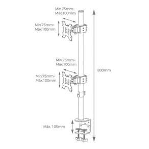 Suporte 2 Monitores 14 a 32 Vertical Base Morsa SIM-1500 - Modelo: SIM-1500 Suporte vertical para 2 monitores de 14 a 32 polegadas com base morsa AQUÁRIO SIM-1500 Altura da coluna de 80 cm Medida da mesa até o topo da coluna central . O ajuste de altura do monitor pode ser feito desde a posição rente a mesa até o topo da coluna. Produzido em aço carbono com pintura epóxi eletrostática e tratamento Anti-Corrosão. OBSERVAÇÃO Pode atender monitores até 34 polegadas desde que tenham peso até 10 kg e VESA 75x75 ou 100x100mm. Para saber o VESA de seu monitor basta verificar se ele tem na parte traseira 4 pontos com rosca na medida de 7,5x75 ou 10x10cm. CARACTERÍSTICAS :: Sua base morsa garante segurança na instalação e uso diário. :: A base do monitor pode ser rotacionada em 360º, permitindo visualização em orientação retrato ou paisagem. :: Pode também ser inclinada e girada para os lados. :: Organizador de cabos junto à coluna central. DIFERENCIAIS :: Atende a NR 17 Ergonomia . :: Não é necessário furar a mesa Montagem por morsa . :: Permite ajuste de altura, inclinação e rotação. :: Fácil instalação e organização dos cabos. :: Permite uso modo Retrato ou Paisagem. INFORMAÇÕES ADICIONAIS :: Polegadas: 14 a 32 polegadas. :: Inclinação: Até +45 / -45 limitado ao tamanho da tela :: Rotação lateral: 90. :: Rotação dos monitores: 360. :: Cor: Preto. :: Local de instalação: Mesa. :: Furação VESA: 75x75 e 100x100mm. :: Capacidade de carga: 10 kg. :: Material: Aço carbono. Características Gerais do Produto: Padrão VESA mm : 75x75; 100x100 Com Pistão a gás: Não Tamanho da Tela: De 14 a 32 Modo de Fixação: Morsa / Parafuso Peso Suportado: Limite de 9kg cada tela Local de Instalação: Mesa Cor do Suporte: Preto Acompanha o produto: Suporte para monitor SIM-1500 Kit de parafusos para montagem Kit para fixação morsa e parafuso Manual de instruções Certificado de : 1 ano junto ao fabricante Marca: Não Informado