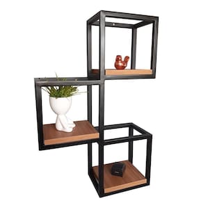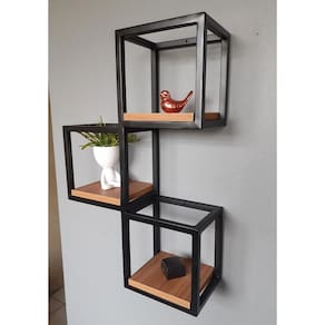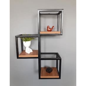 Suporte 3 Nichos Industrial De Parede Ferro E MDF Suporte com 3 repartições em nicho. Compacta e versátil, vai bem em salas, quartos, cozinhas e ambientes externos. Feita em aço Metalon com acabamento em pintura automotiva e MDF de 15mm.