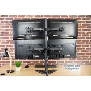 Indicado para quatro telas de 15 a 32 polegadas com padrão de fixação VESA 75x75 ou 100x100mm e com peso de até 8kg (peso de cada tela sem a base original).