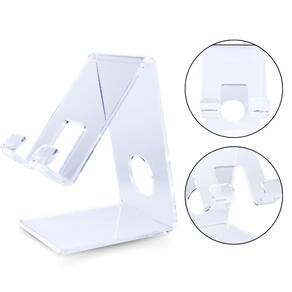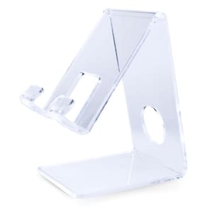 O suporte de celular em acrílico é uma estrutura projetada para segurar dispositivos móveis, como smartphones e tablets, de forma estável e segura. Possui uma base sólida para garantir estabilidade, e uma inclinação adequada para oferecer uma boa visão da tela do dispositivo, permitindo que celulares sejam colocados na vertical ou horizontal, além disso, o acrílico é um material resistente e durável, o que torna esse tipo de suporte uma opção confiável para uso diário. Sua transparência também permite que o design do dispositivo seja exibido sem obstruções, combinando com qualquer ambiente. Com seu tamanho compacto pode ser carregado para diversos lugares, tendo uma abertura na parte de trás para encaixe de carregador sem interferir no fio ou fazer com que ele se dobre, aumentando a vida útil dele.