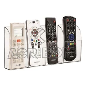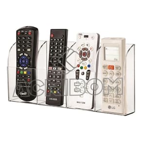 Importante: Não vendemos produtos por intermédio de outros vendedores. Antes de finalizar a compra, certifique-se de que o vendedor é a acribom. Nossos produtos são identificados e possuem de 1 ano. Suporte para controle remoto de ar condicionado em acrílico cristal para 04 controles. Altura: 14 cm Largura: 29,5 cm Profundidade: 4 cm Medida interna de cada compartimento: altura: 14 cm, largura: 07 cm, profundidade: 04 cm Acompanha parafusos e buchas + fita dupla face para fixação Antes de utilizar a fita dupla face como alternativa para a instalação, verifique a superfície a ser aplicada. Este é um produto produzido por: acribom plásticos ltda Marca: Não Informado Ean: 79007918834208