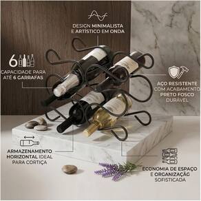 Suporte Adega Para 6 Garrafas Vinho Champanhe Aço Cozinha Preto Fosco