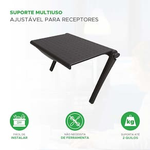 Este suporte ajustável, com dimensões compactas de 17,7 x 11 cm, é a solução ideal para otimizar espaço e manter seus dispositivos digitais organizados e acessíveis. Prático e versátil, não requer montagem para instalação, sendo compatível com uma variedade de dispositivos, desde conversores digitais a pequenos , controles e caixas acústicas. Desenhado com a versatilidade em mente, o px-avs1s pode ser facilmente ajustado para acomodar o tamanho do seu aparelho, garantindo um encaixe seguro e estável. Com sistema de braço regulável, adapta-se a diversos produtos e suporta até 2kg. Além de sua funcionalidade prática, seu design elegante e discreto complementa qualquer decoração, integrando-se harmoniosamente ao ambiente. Feito com materiais de alta qualidade, o px-avs1s é durável e confiável, assegurando que seus dispositivos estejam sempre protegidos. Especificações técnicas: Suporte multiúso conversor e digital ajustável - 17,7 x 11cm - px-avs1s Marca: Não Informado