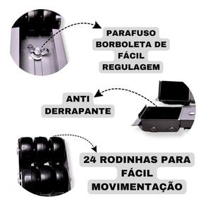 Esse suporte é fácil de usar e ajustável, podendo se adaptar a diferentes tamanhos. Ele possui travas que garantem a segurança na hora de mover o eletrodoméstico e, quando precisar, é só destravar. Feito em aço resistente e reforçado, ele suporta qualquer tipo de móvel ou eletrodoméstico.