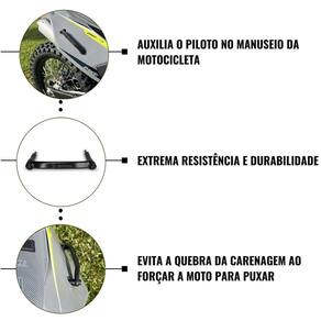 Seu design não apenas complementa a estética agressiva das motos off-road, mas também oferece um ponto de apoio ergonômico para puxar ou empurrar a moto quando necessário.