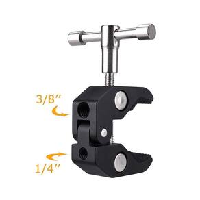 Suporte Alicate Crab Clamps Z7 Para Braço Articulado E Estúdio O Suporte Alicate Caranguejo Crab Clamps para Braço Articulado pode ser conectada no suporte rapidamente, e convenientemente instalado, Rosca 1/4 e 3/8 com Câmeras, Luzes, Flash, Monitores, Braços Mágicos e etc.Características: Leve e durável. Braçadeira ajustável para Câmera Pequeno, fácil de carregar, ideal para fotografia, vídeos e iluminação. Parte de trás com Rosca 1/4 e 3/8 para fixação de acessórios Projeto manopla rotativa ajustável, aperto alcance da câmera, acessório e filmadora. com alavanca de catraca para travamento e liberação rápida e segura. Adequado para braço de equipamentos fotógrafos e câmera de fixação, display LCD, monitores, braços Mágicos, etc. Marca: Não Informado