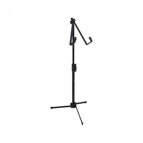 Feito de aço carbono e plástico, é leve e durável, com peso de apenas 0,985 kg. Sua altura pode variar de 59,5 a 96,5 cm, atendendo às necessidades de diferentes músicos. Além disso, suporta até 1,5 kg de carga e é compatível com pandeiros de até 14 polegadas de diâmetro.