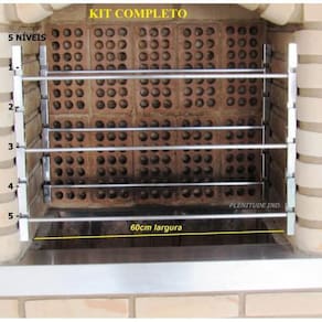 Suporte para grelha e espetos para churrasqueiras até 60cm largura com 6 tubos alumínio Descrição Contém: 4 suportes 100% inox 430 de 39cm; 6 barras de tubo de alumínio comprimento de 60cm e 12mm diâmetro aguenta até 10K; Acompanha buchas e parafusos. Observação: - Atende churrasqueira até 60cm largura os suportes não compensarão o tamanho se a churrasqueira for maior confira as medidas de sua churrasqueira antes de comprar pois se for 61cm a barra poderá ficar caindo O kit de suporte serve para apoio de grelhas e espetos, pode ser instalado em churrasqueiras de alvenaria, gourmet com parede , tijolinhos . As barras podem ser serradas se a churrasqueira for menor na largura com uma serrinha manual. Características do produto: - possui 5 níveis de altura - Suporte com 3 dobras - para dar maior sustentação e chapa 0,70mm - Barra de 1/2 polegadas - Tem alta resistência a corrosão por sem em inox - Fácil limpeza, por ser inox polido - Excelente acabamento e designe, deixe sua churrasqueira moderna - Fácil instalação - utilidade em churrasqueiras de alvenaria, gourmet e pré-moldada Instalação: Produto de fácil instalação, você mesmo instala com uma furadeira e broca de 6mm e auxílio de uma trena. Retirar primeiramente a película branca ou azul dos dois lados dos suportes. As barras podem ser cortadas Sim podem ser serradas pelo próprio comprador com uma serrinha manual em caso de a churrasqueira ser menor que 60cm. Fabricação: Plenitude Industria - Pleno Industria Fotos ilustrativas, não acompanha grelha Marca: Não Informado Ean: 0606529273965