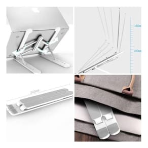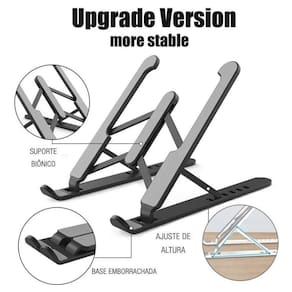 Material abs resistente, articulação em alumínio e borrachas de silicone. Suporte até 15,6 polegadas.