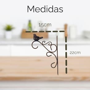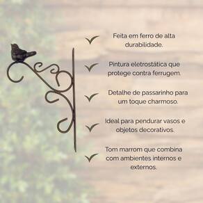 Fabricado em ferro resistente com pintura marrom, o suporte oferece durabilidade e combina facilmente com áreas externas e internas.