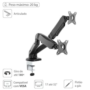 O Suporte Articulado a Gás para 2 Monitores 13 15 17 21 27 Vesa 100 da VINIK é a solução ideal para quem busca uma melhor organização e ergonomia em seu ambiente de trabalho. Fabricado em aço sólido e alumínio fundido, esse suporte oferece durabilidade e resistência.