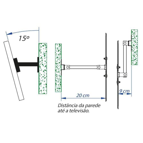 Suporta: 40kg garantia: 3 anos articulado: 3 movimentos kit de instalação: incluso para telas até: 56 polegadas