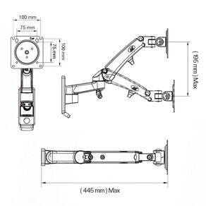 Características Gerais do Produto: - Padrão VESA (mm): 75x75; 100x100 - Com Pistão a gás: Sim - Tamanho da Tela: De 17 a 34 - Peso Suportado: De 3 à 12kg - Local de Instalação: Parede / Painel